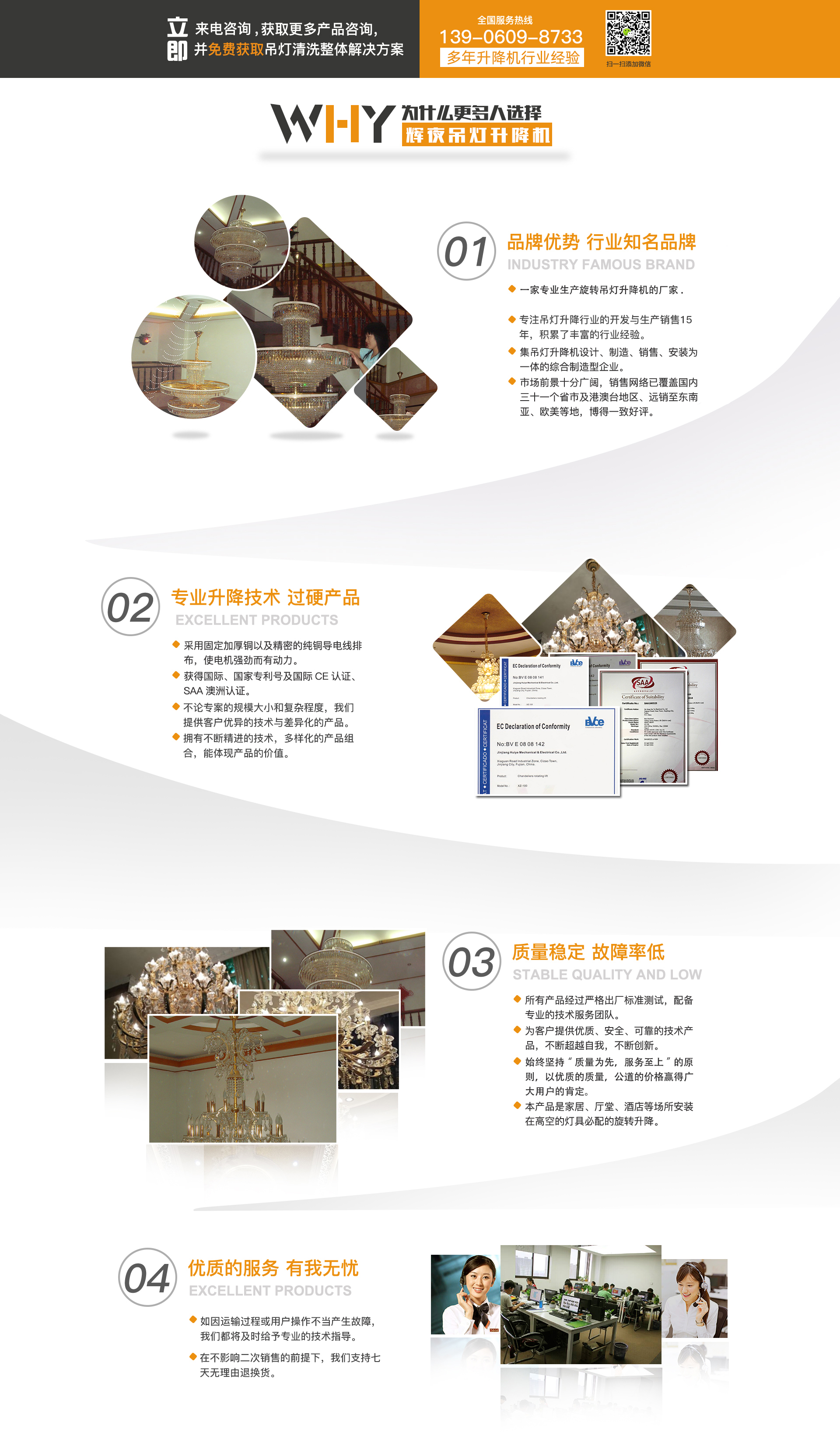 關(guān)于我們輝夜專(zhuān)注吊燈升降機(jī)研發(fā),深入理解用戶(hù)需求。我們的產(chǎn)品通過(guò)精巧設(shè)計(jì),簡(jiǎn)化吊燈安裝維護(hù),節(jié)約時(shí)間精力,且防塌陷穩(wěn)固安全。這款升降機(jī)廣受好評(píng),期待與您合作。輝夜人堅(jiān)持“以人為本,追求品質(zhì)”理念,不斷改進(jìn)創(chuàng)新,精心打造這款品質(zhì)產(chǎn)品,讓用戶(hù)無(wú)后顧之慮。歡迎提需求,我們攜手發(fā)掘吊燈魅力。HuiyefocusesonR&Dofchandelierliftstodeeplyunderstanduserneeds.Ourliftsimplifiesinstallationandmaintenancethroughingeniousdesign,savingyoutimeandeffort.